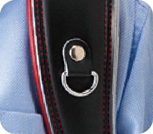 背中と背当てがしっかり密着するように肩ベルトを調整。