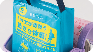 教科書を入れた時と同じような「おもり」を入れて背負ってみよう!