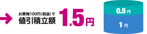 ご利用金額100円(税抜)につき、値引積立額1.5円プレゼント!