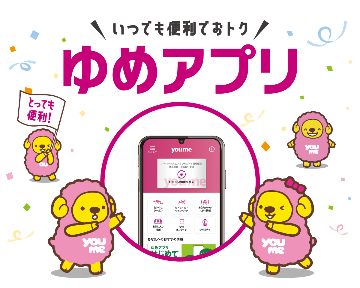 ※モバイルゆめカードとは繰り返しチャージして使える電子マネー「ゆめカードゆめか」のモバイル版です。