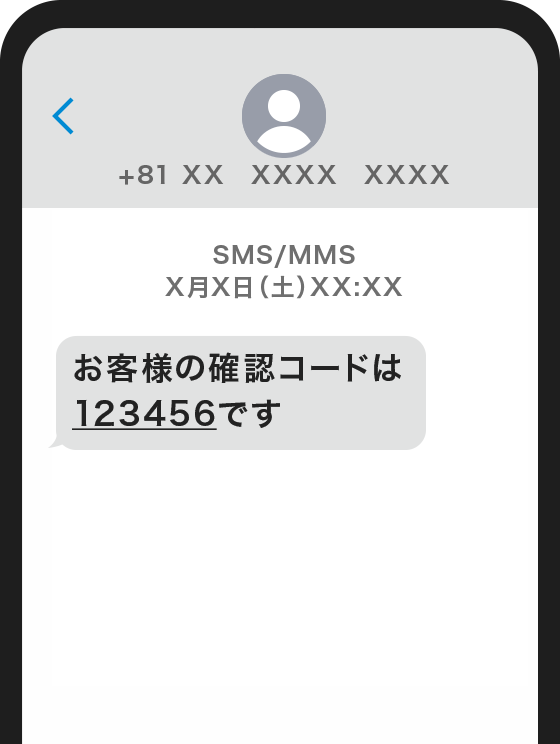 入力いただいた電話番号に、SMS(メッセージ)で認証コードを受信。