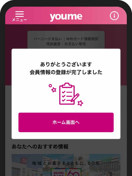 ※登録後、いまお使いのスマートフォンの画面がゆめカードとして利用いただけます。