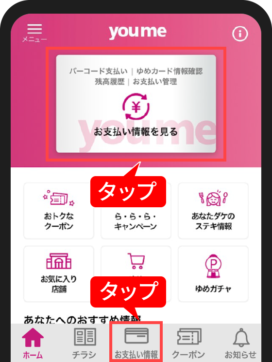 アプリのホーム画面の「カード」or「お支払情報」を選択。