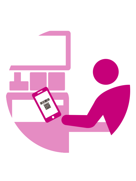 レジスタッフに、画面をご提示ください。スキャナで読み取りを行います。