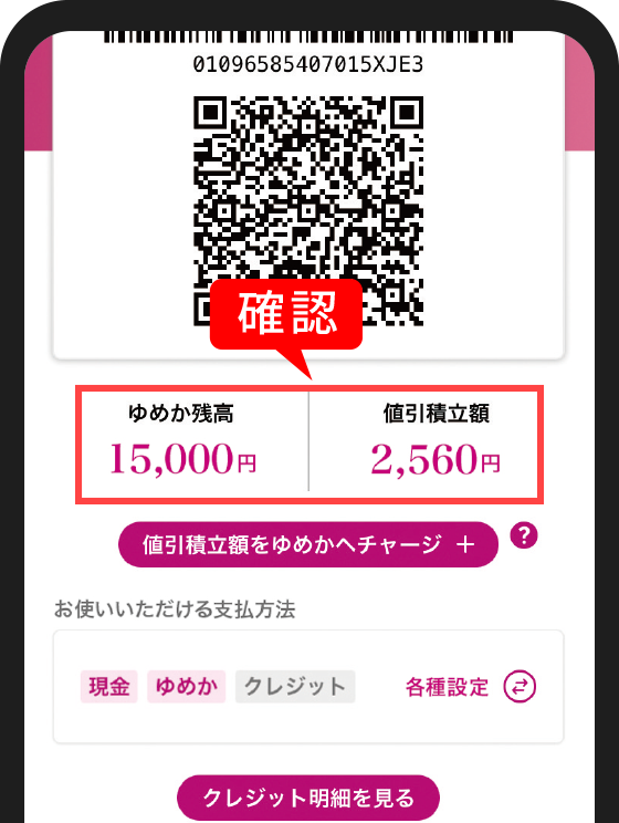 カードでの電子マネーゆめか払い・ゆめカードクレジット払いと同様、お得に値引積立額が貯まります。