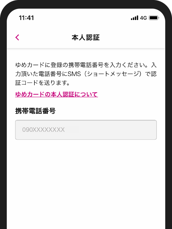 ゆめカードに登録した携帯電話番号を入力してください。
