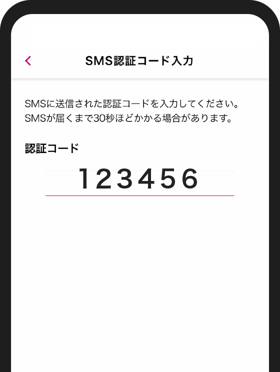 入力いただいた電話番号に、SMS(メッセージ)で認証コードを受信。