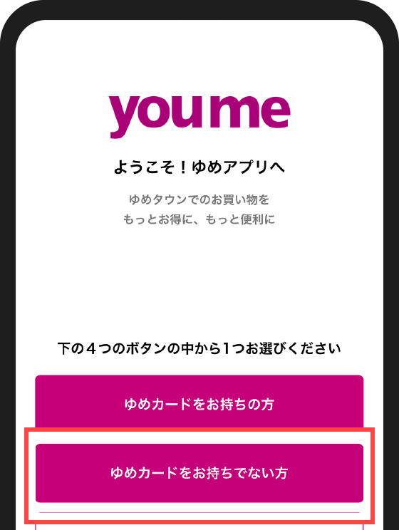 アプリを起動して「ゆめカードをお持ちでない方」を選択してください。