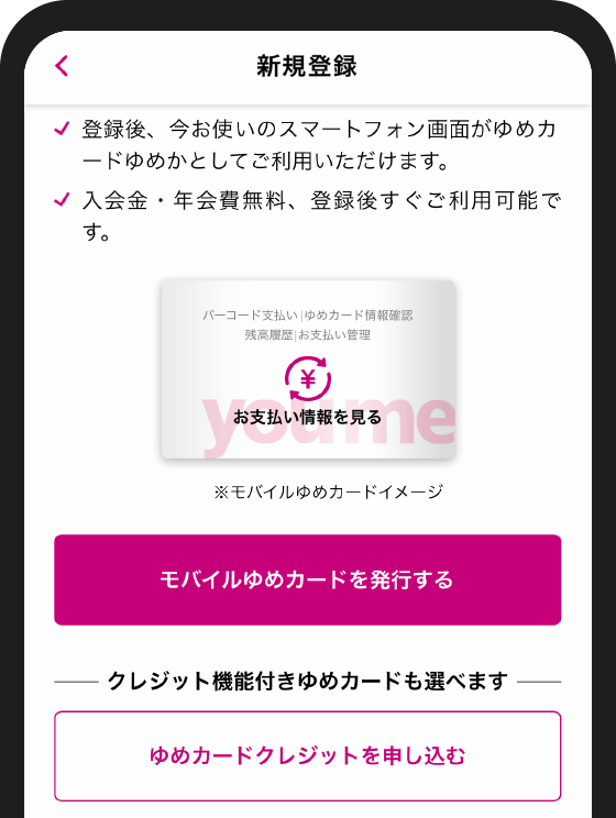 「モバイルゆめカードを発行する」を選択してください。