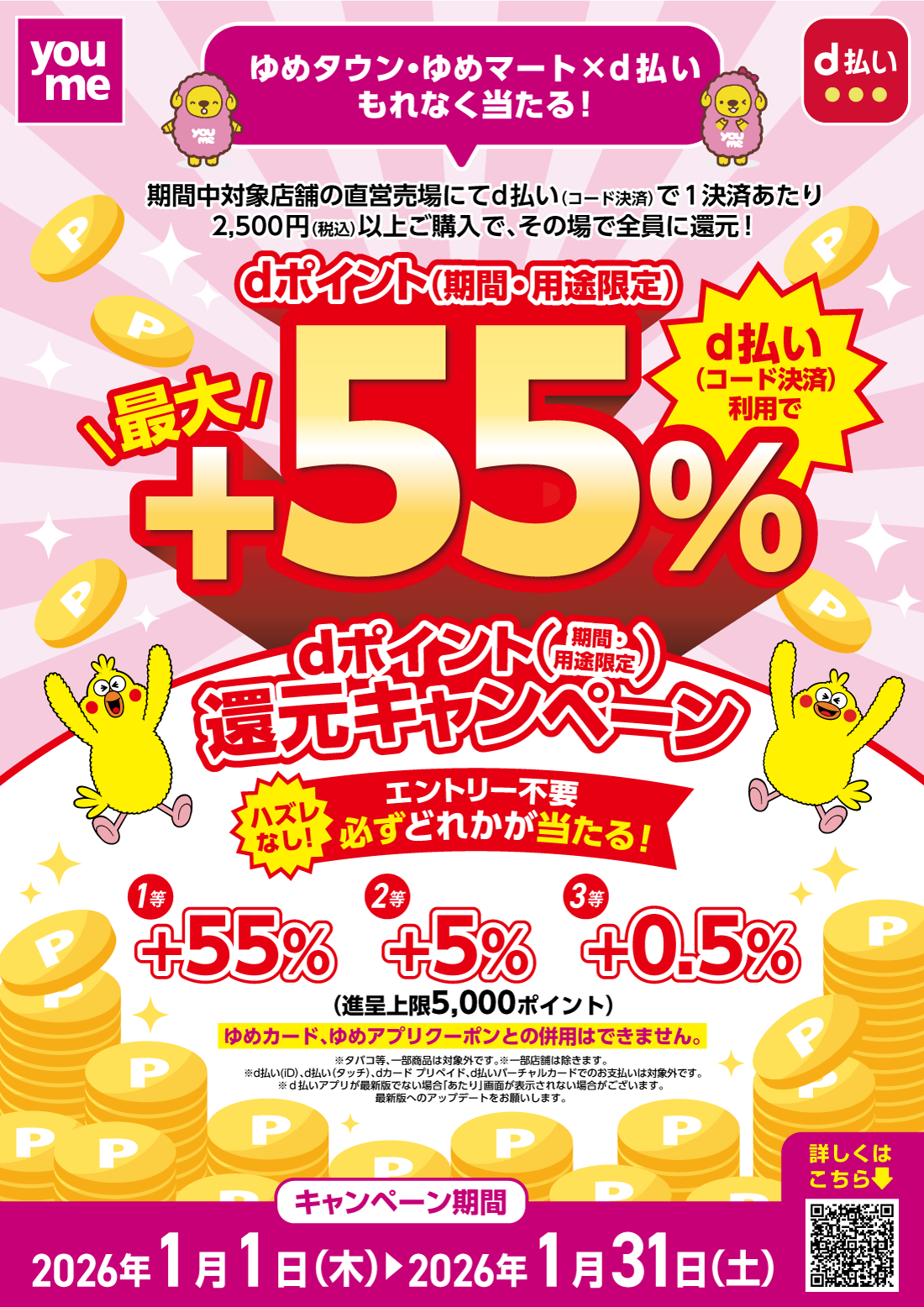 店舗総合TOP イベント/キャンペーン ゆめタウン・ゆめマート × d払いでもれなく当たる!『dポイント還元キャンペーン』
