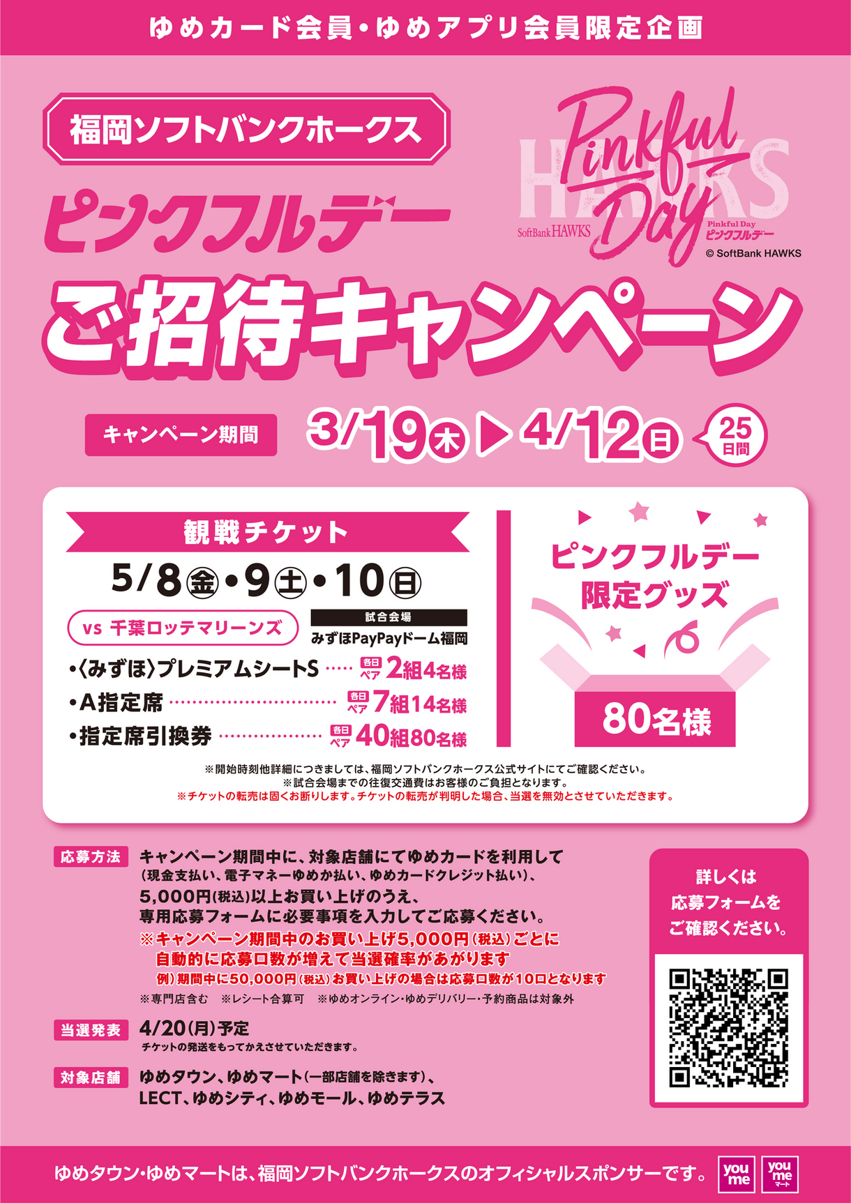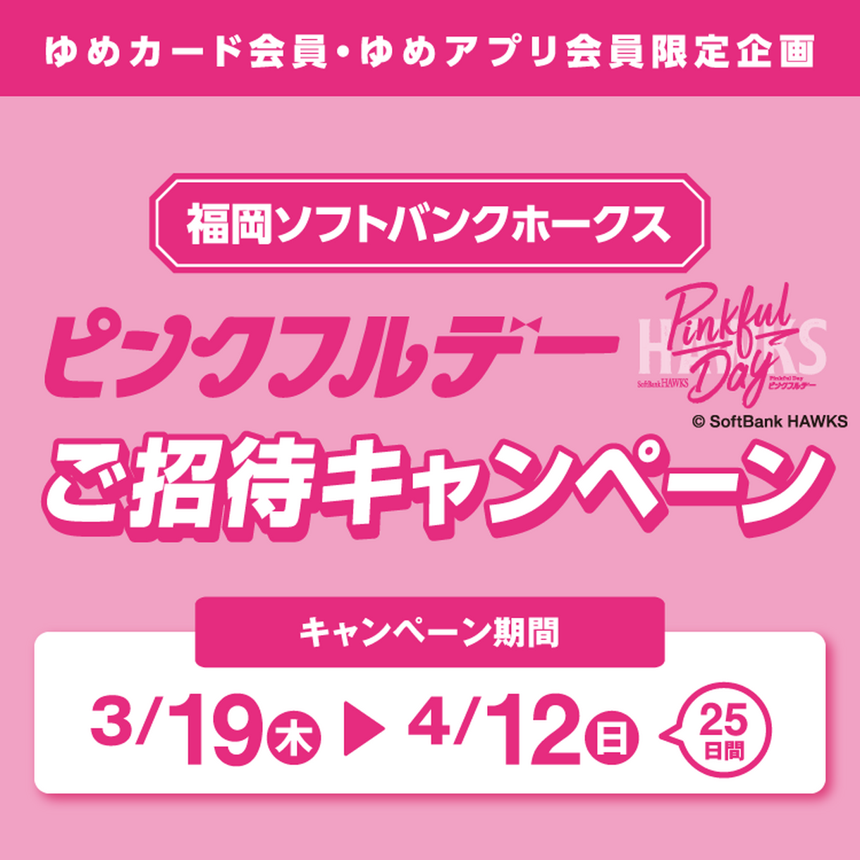 【ゆめカード会員・ゆめアプリ会員 限定企画】『福岡ソフトバンクホークス ピンクフルデー』ご招待キャンペーン