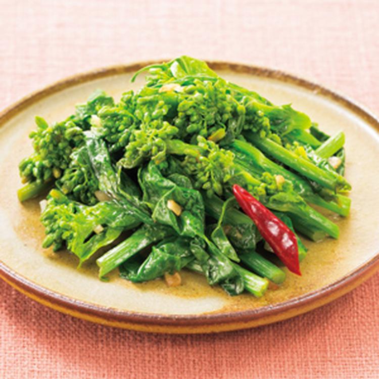 菜の花の和風ペペロンチーノ炒め