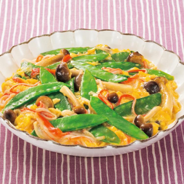 鍋にA・水1/2カップを入れて中火にかけ、煮立ち始めたらさやえんどう・Bを加えて約1分半煮る。