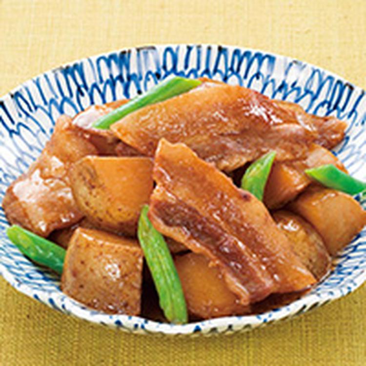水1カップ・しょうゆ・水あめを加えて時折混ぜながら中火で約15分煮絡める。器に盛って茹でたいんげんを添え、お好みで練りからしをつけていただく。