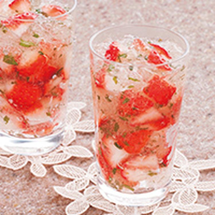 ボウルにいちご・コアントロー・グラニュー糖(分量外)を入れて混ぜ合わせ、冷蔵庫に入れて冷やす。
