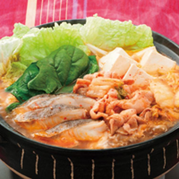 鍋にごま油を熱して強火で豚肉・キムチを炒める。