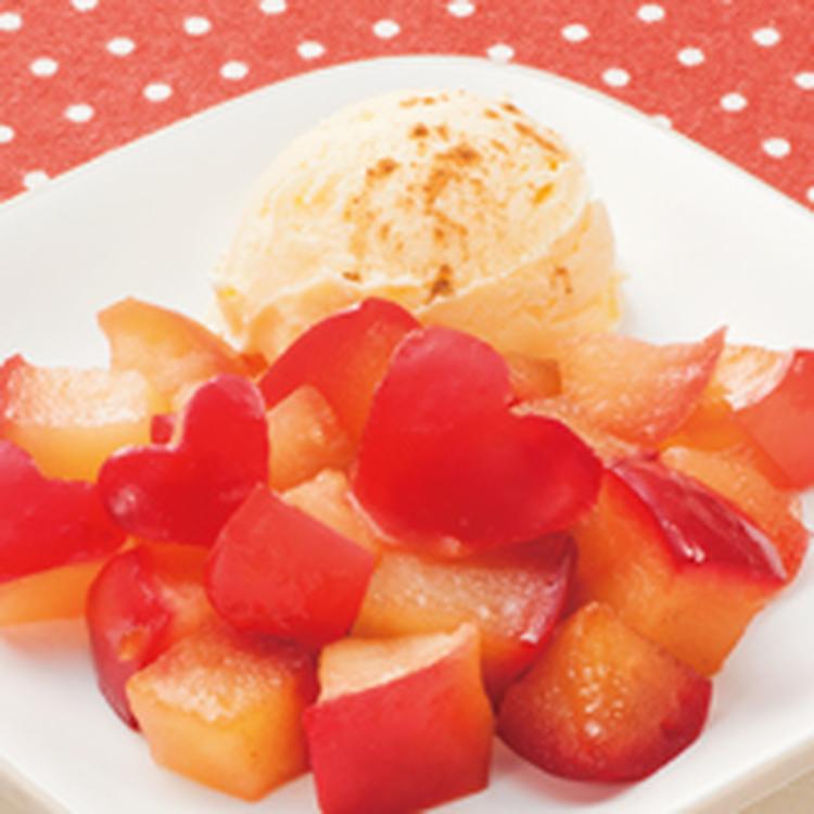 りんごは皮付きのままお好みの型で抜いたり一口大に切る。