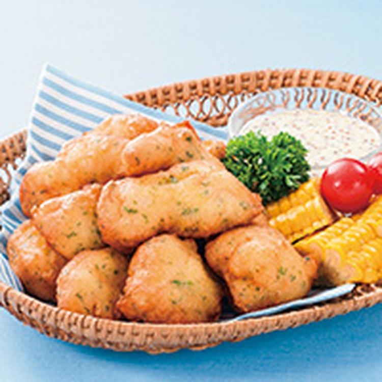 ボウルにA・水1/2カップを加えて混ぜ合わせ、(1)をくぐらせる。低温の揚げ油で約5分揚げる。