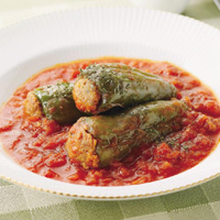 ピーマンの肉詰めトマト煮込み