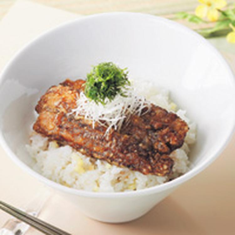 炊き立てのご飯に、(4)のしょうがを混ぜ込んだら、丼に盛り、(5)のいわしをのせ、白髪ねぎ、大葉をのせる。あれば粉山椒をふりかける。