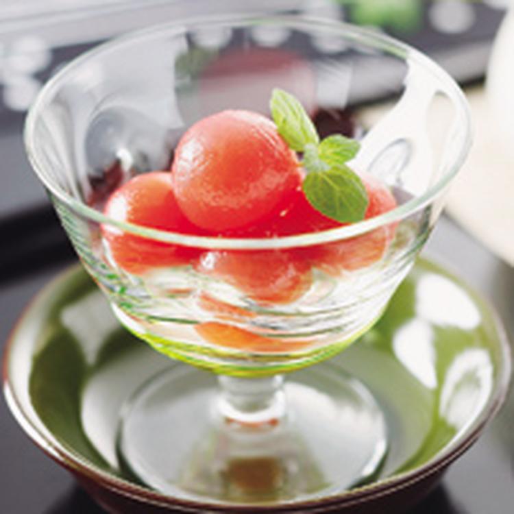 (2)に(3)を加え、冷蔵庫で一晩漬けて味をしみこませる。器に盛り付けて、あればミントの葉を飾る。