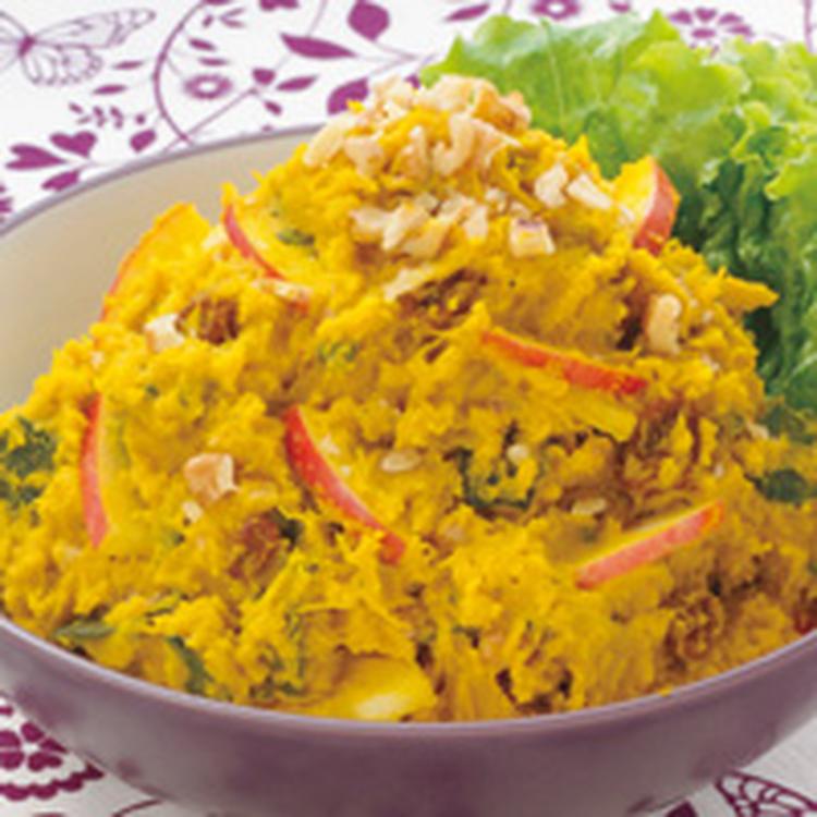 かぼちゃはゆでて水気を切り、ボウルに入れて軽く潰す。