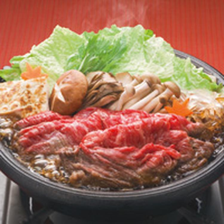 すき焼き鍋を熱して牛脂を入れ、肉を炒める。すき焼きのタレを注いでAを加えて煮る。