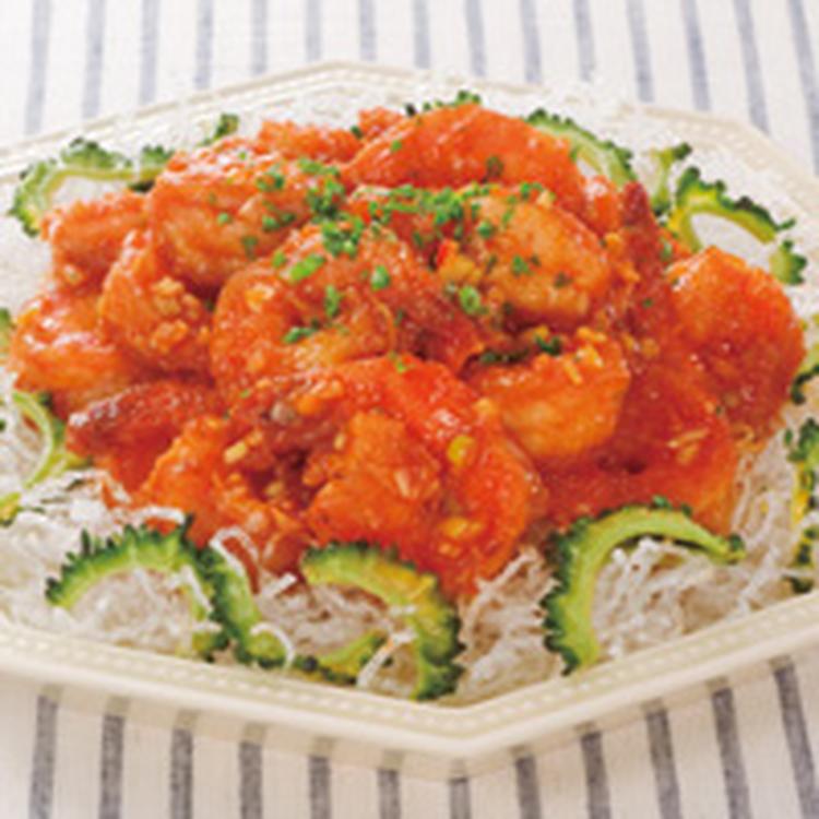 春雨は低温の油で、ゴーヤは高温の油で揚げる。