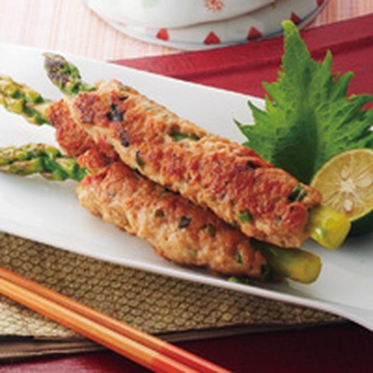 アスパラガスの梅つくね