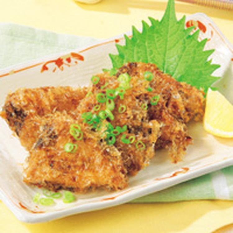 揚げ油をやや低めの中温で熱して、(3)を入れてカラリと揚げる。よく油をきって盛り付け、大葉を添えてねぎの小口切りを散らす。好みで、ポン酢、レモンを添えていただく。