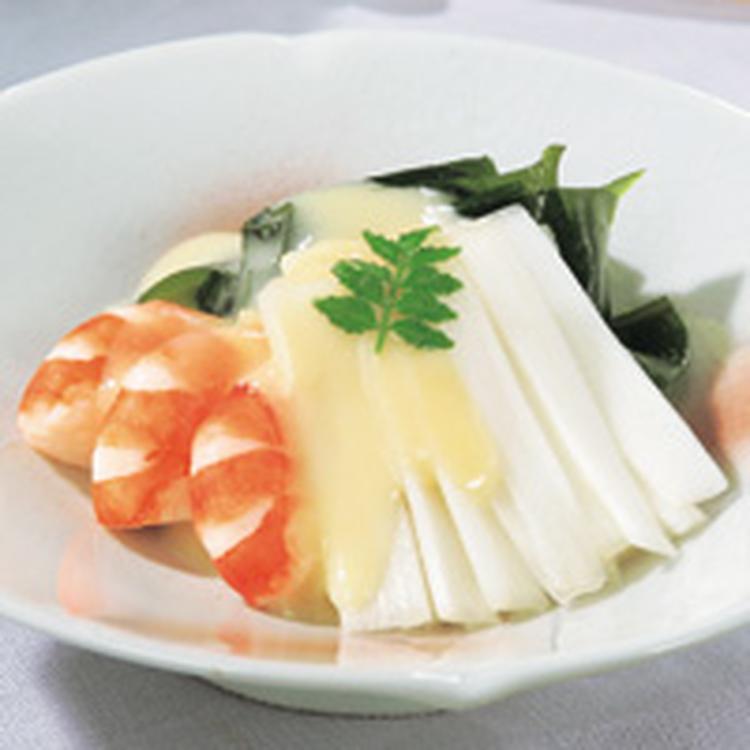 水気を切ったうど、わかめ、えびを彩り良く盛り合わせ、(3)をかける(酢味噌は作りやすい分量なので多めに仕上がります)。