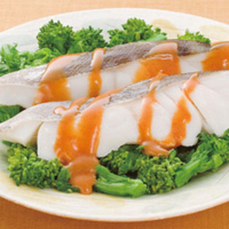菜の花とタラの蒸し煮ピリ辛ソース