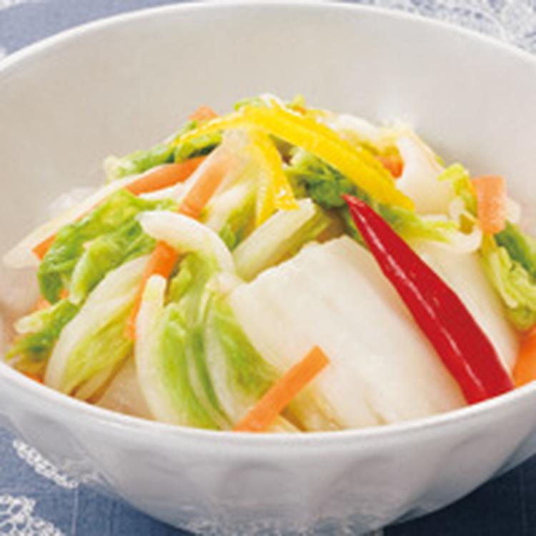 白菜・人参は粗塩をまぶし、重石をして2~3時間おく。