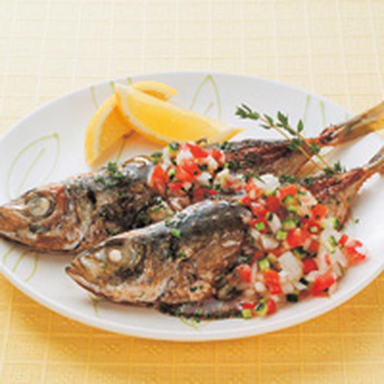 あじは下ごしらえをし、軽く塩・こしょうを振る。