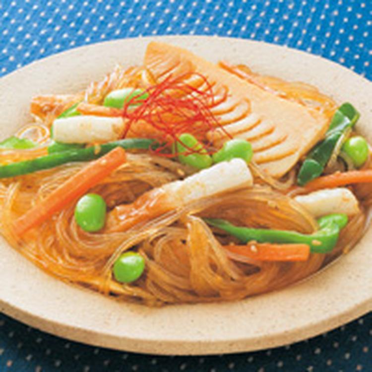 フライパンにごま油を熱してにんにくを炒め、香りが立ってきたらAを順に炒める。ちくわ・茹でた枝豆を加えていため合わせ、(1)を加えてBで味を調えて白ごまを振る。