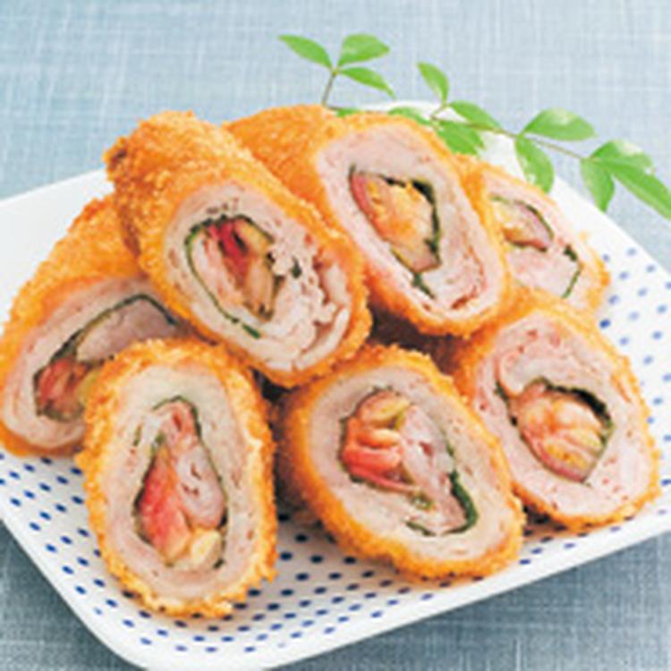 豚肉は広げて塩・こしょうを振り、大葉・みょうが・混ぜ合わせたAを順にのせて巻く。