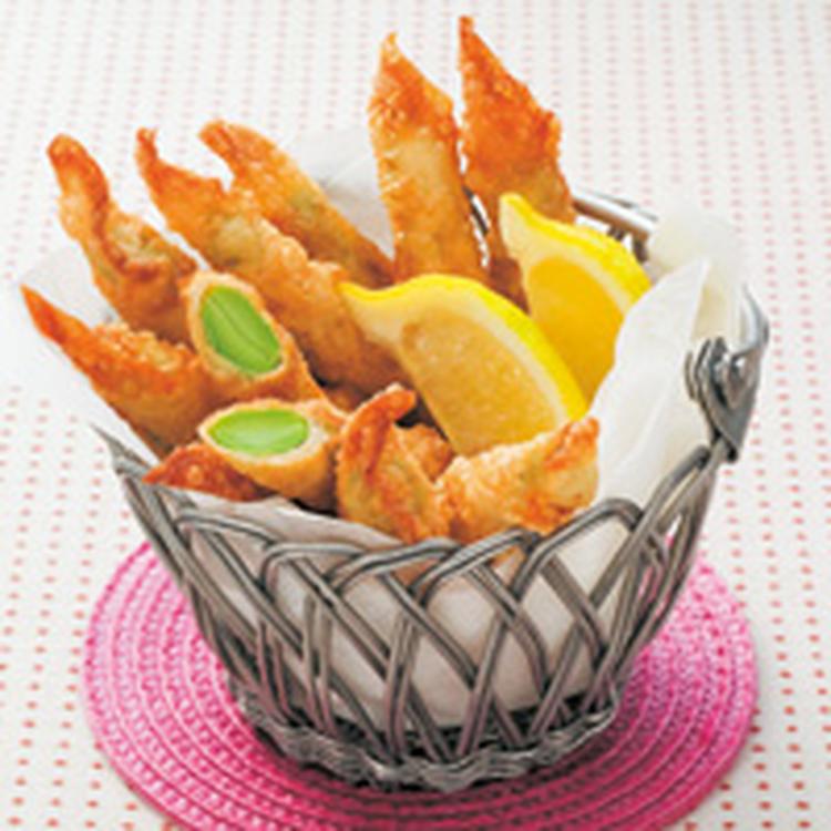 (2)を中温の揚げ油で揚げ、器に盛ってレモンを添える。