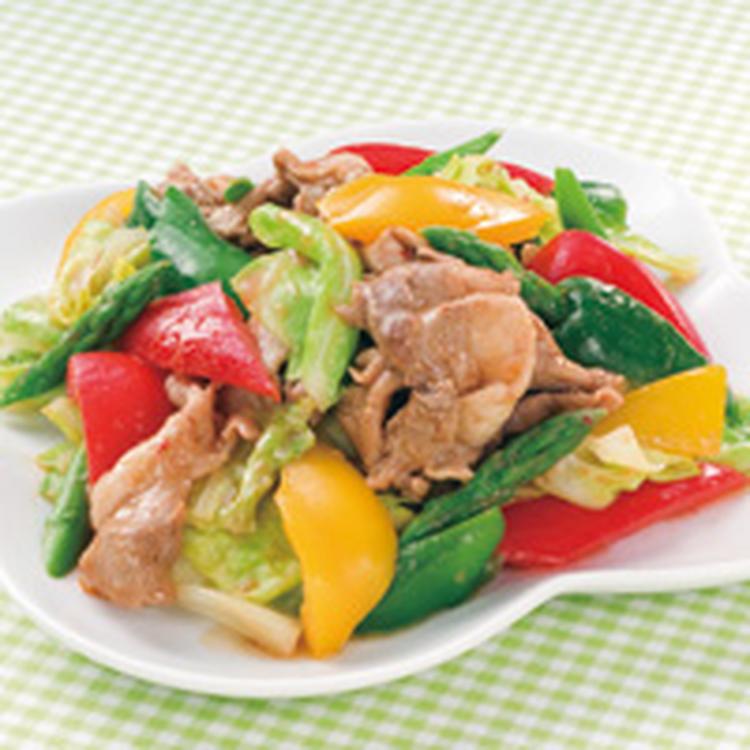 アスパラ・Aを入れて炒め、混ぜ合わせたBを加えてさっと炒める。