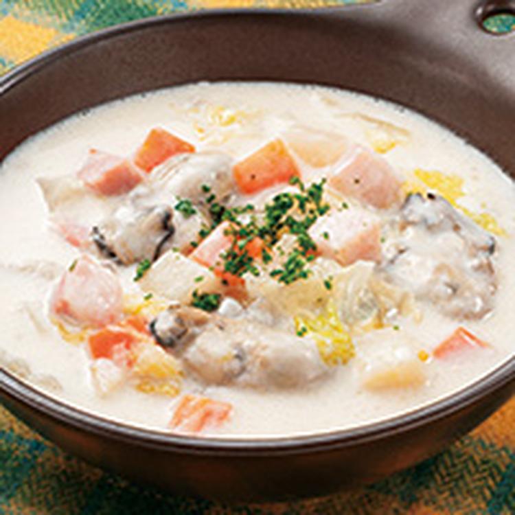 ベーコンの香ばしさとカキの旨味が際立つ一品。