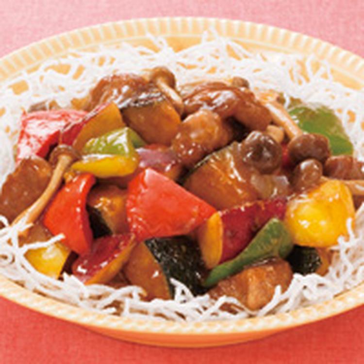 器に(1)の春雨を敷き、(2)を盛る。