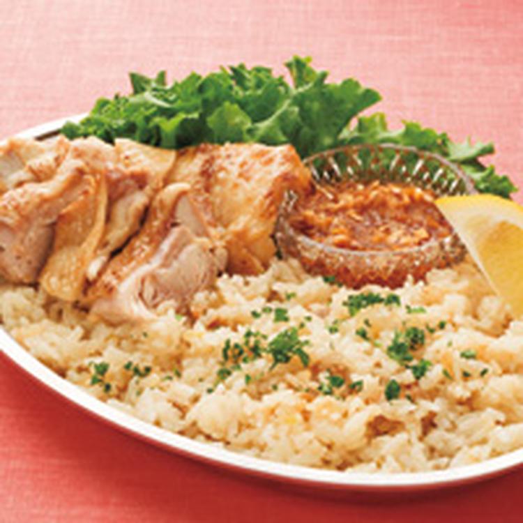 鶏肉を取り出して食べやすい大きさに切り、ご飯は黒こしょうで味を調えサックリと混ぜ合わせる。器に盛ってパセリを散らし、グリーンリーフ・レモンを添える。混ぜ合わせたAをかけながらいただく。