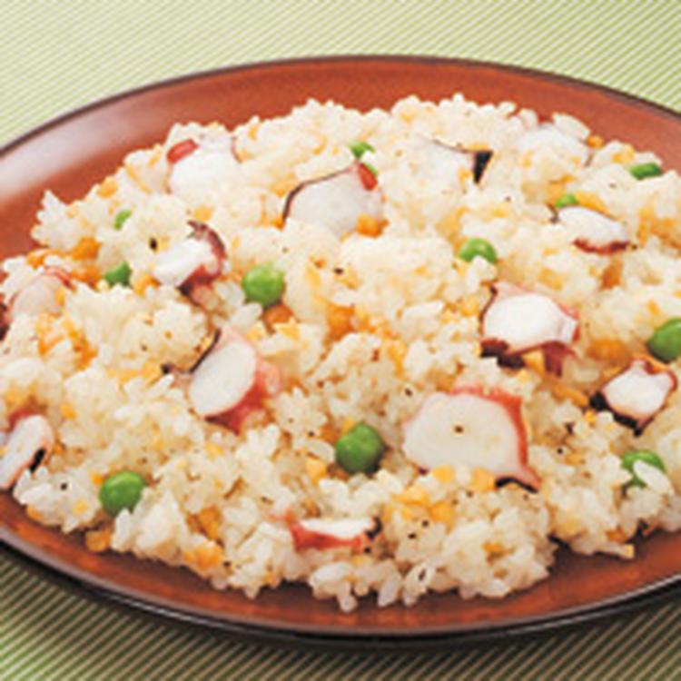 温かいご飯に塩・(1)・(2)を加えてさっくりと混ぜ合わせ、器によそって黒こしょうを振る。