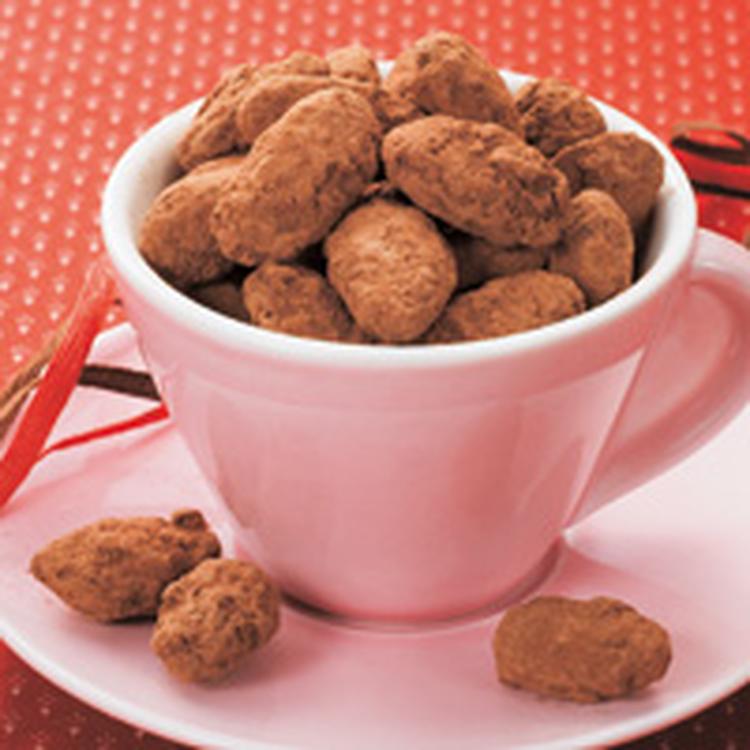 ボウルに(2)を入れて氷水をあて、(1)のチョコレートを1/3量ずつ加えて混ぜながら絡める。バットに広げてココアパウダーをまぶす。