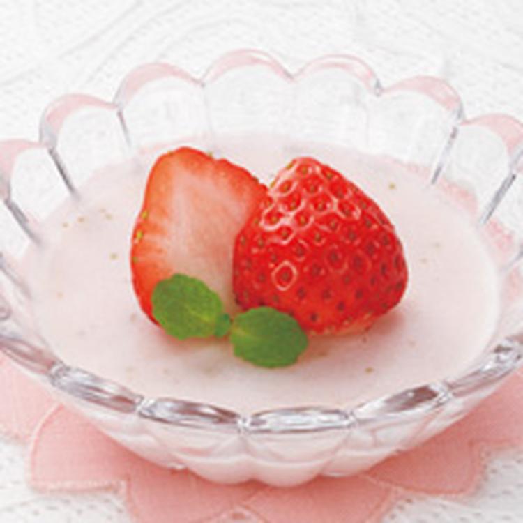 いちご4粒は飾り用に取っておき、残りはミキサーでなめらかになるまで攪拌する。