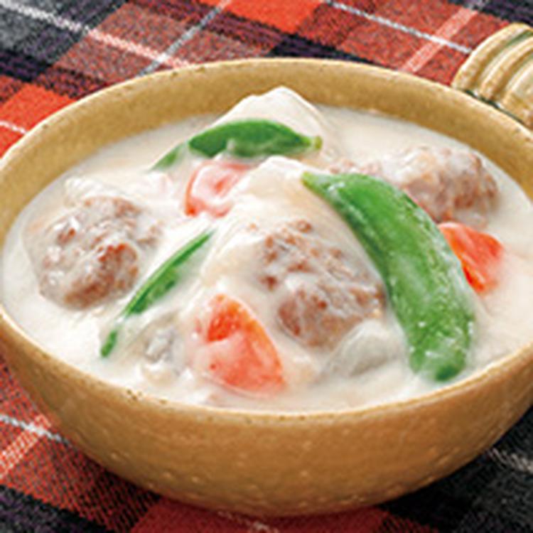 同じフライパンにBを入れて炒め、水3カップ・牛乳・(2)を加えて中火で煮る。