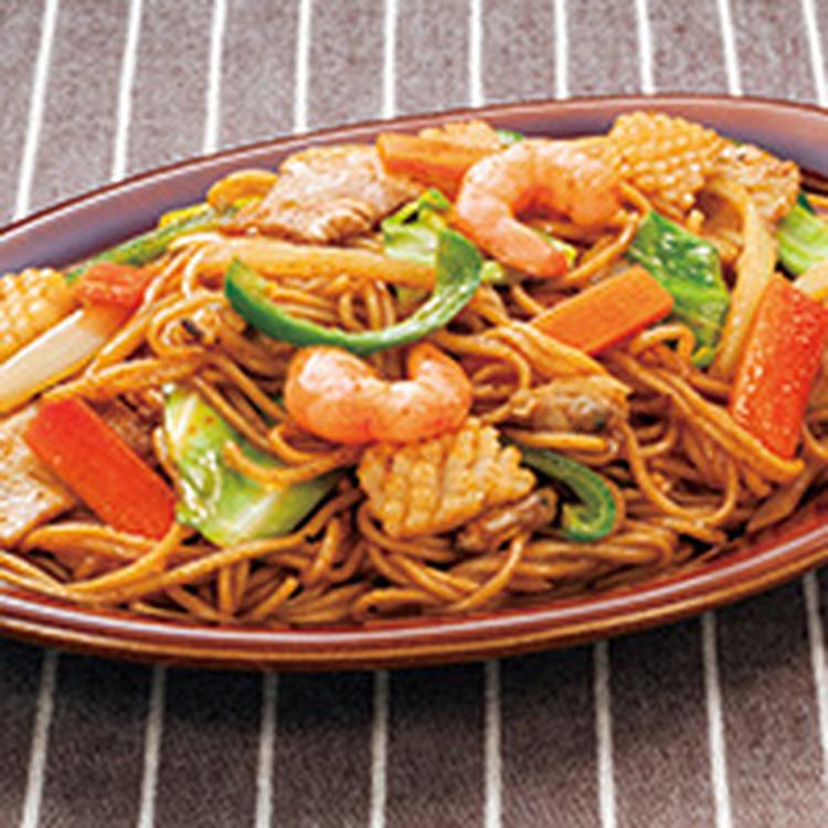 耐熱容器に麺をのせて水少々をかけ、ラップをして電子レンジで約1分加熱する。