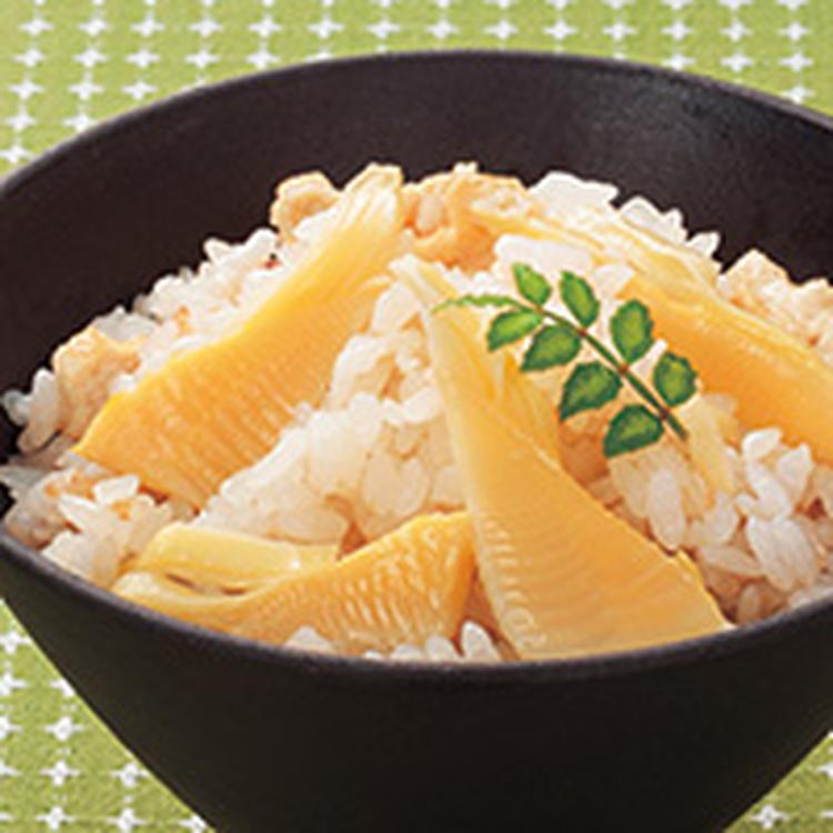 炊飯器に(2)・だし汁・たけのこ・A・(1)を入れて炊く。