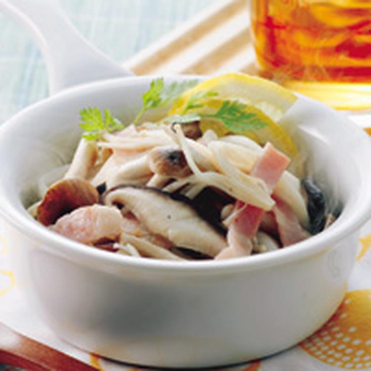 しめじは石づきをとって、小房に分ける。しいたけは石づきをとって3~4mm幅に切る。えのきは石づきを切り落とし、食べやすい大きさにほぐす。