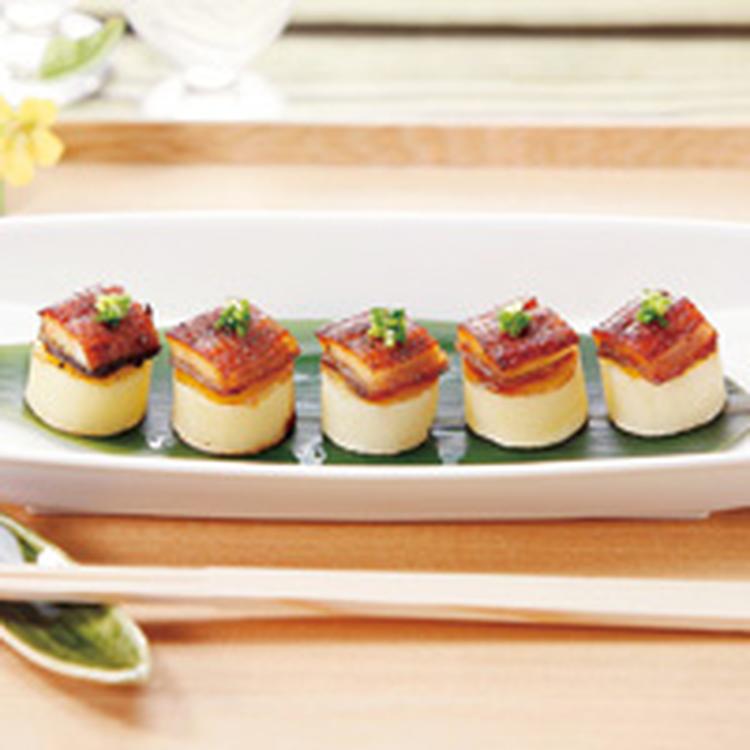 茹で上がったじゃがいもの上にうなぎを乗せ、タレと粉山椒をふり、オーブンで3分程焼く。