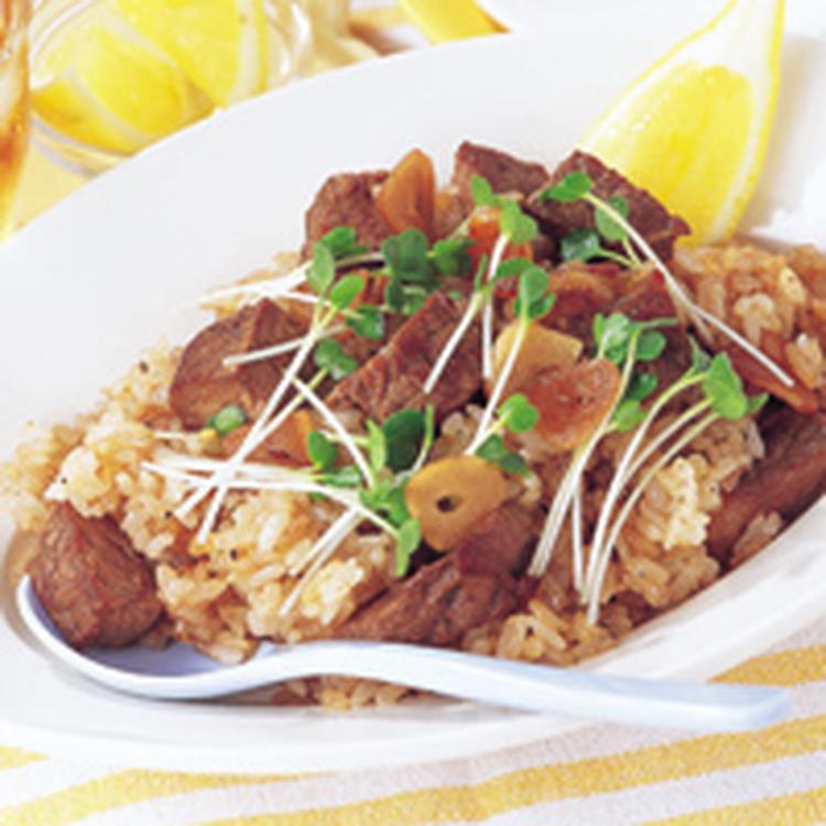 にんにくで香ばしいお肉とごはんです。